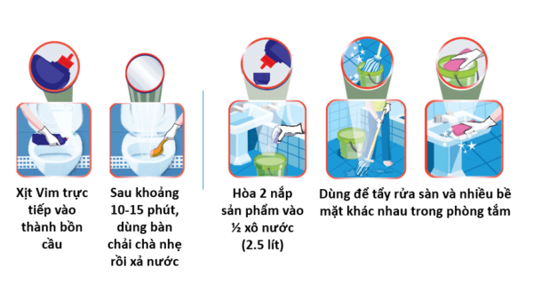 - Vim giúp bảo vệ sức khỏe gia đình bạn khỏi vi khuẩn gây bệnh trong bồn cầu và nhà tắm.